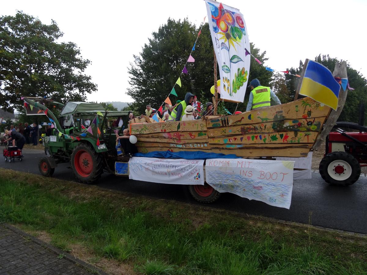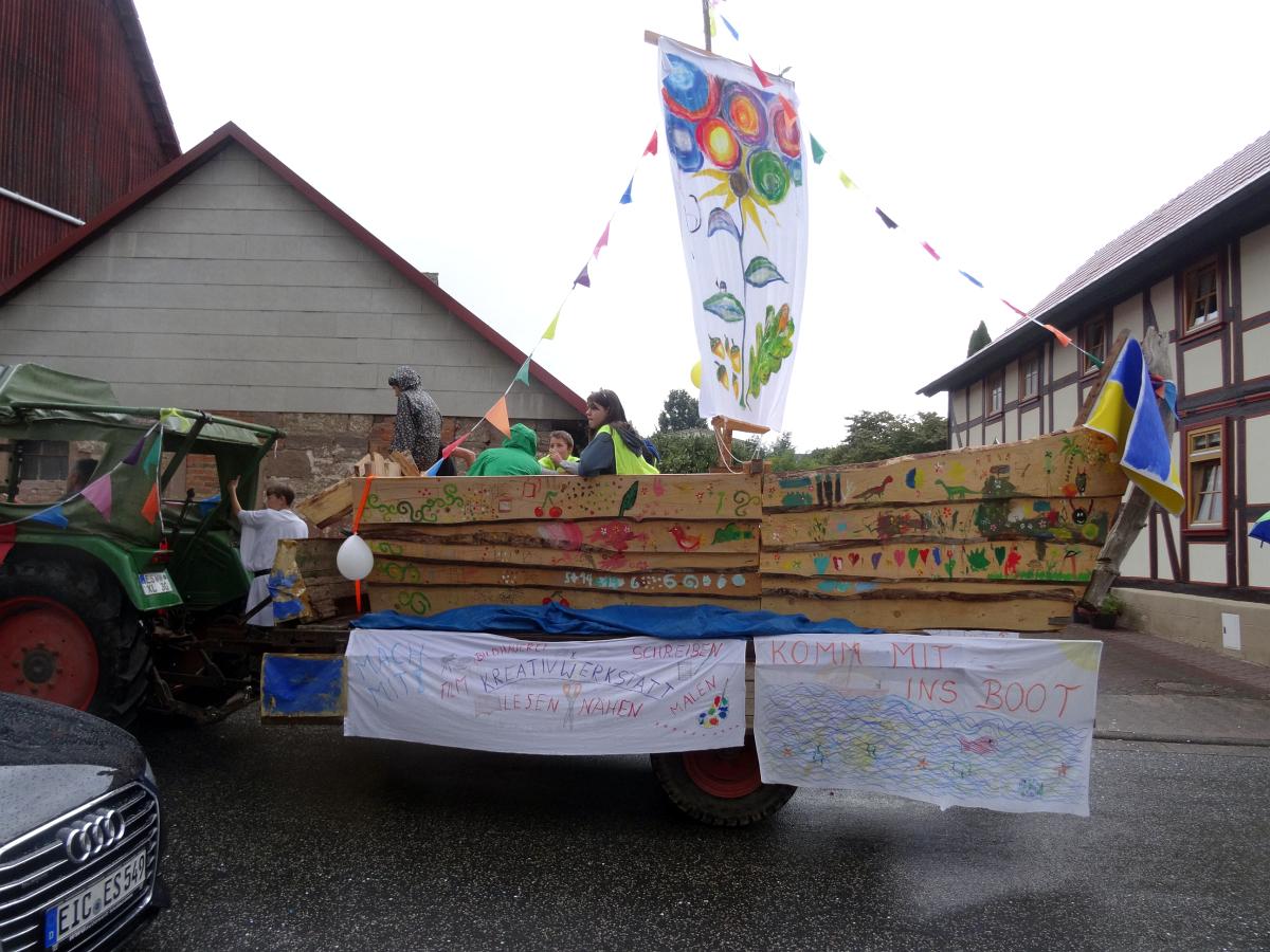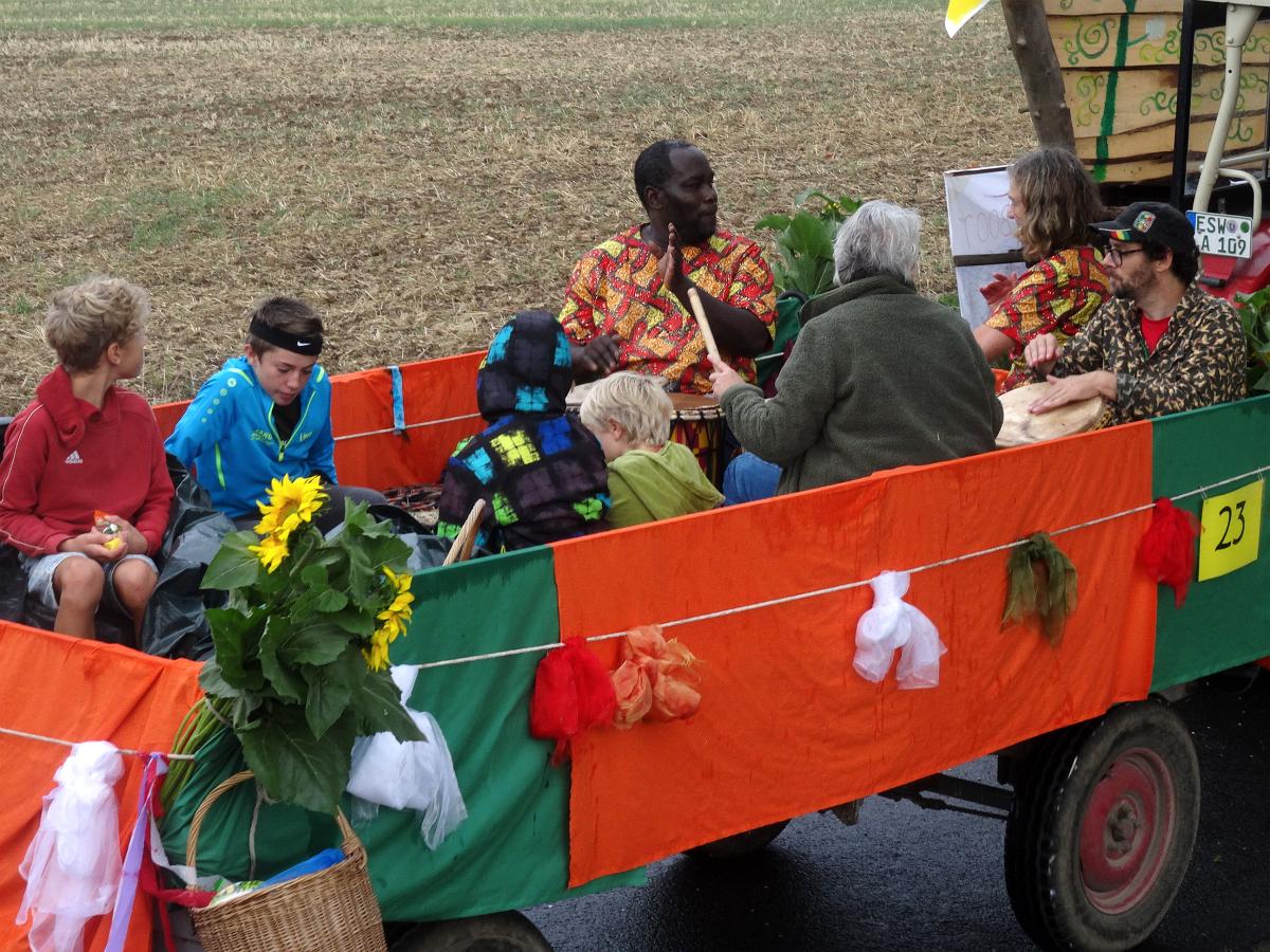 Virtuos trommeln, Entspannung mit Bothmer oder Yoga, Spaß beim Osterspaziergang, die geheimnisvolle Welt der Pilze entdecken, Mobilität auf dem Land verbessern ... Mit einem einem Festwagen zeigten wir uns beim bunt lebendigen Umzug zum Neu-Eichenberger Heimatfest 2022
